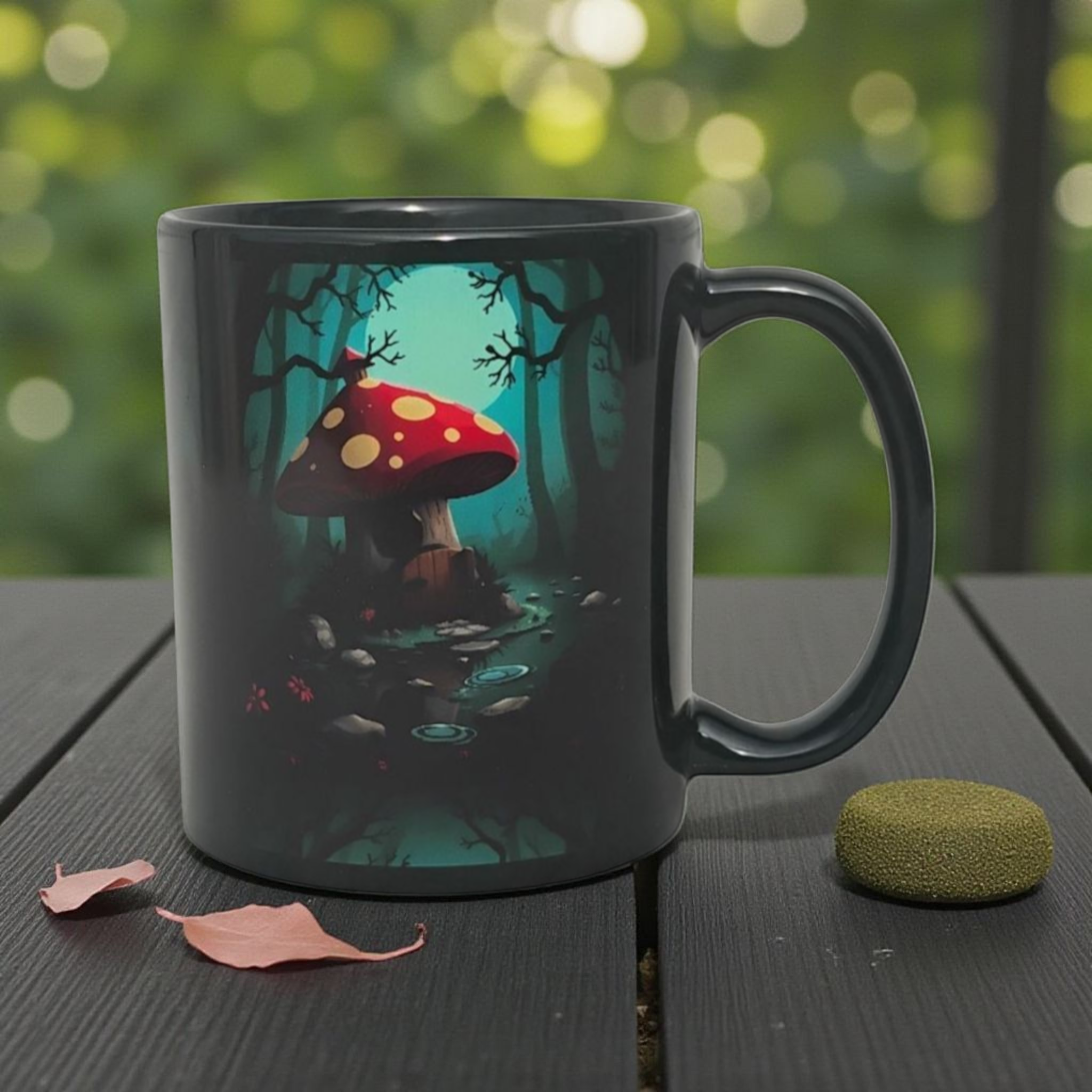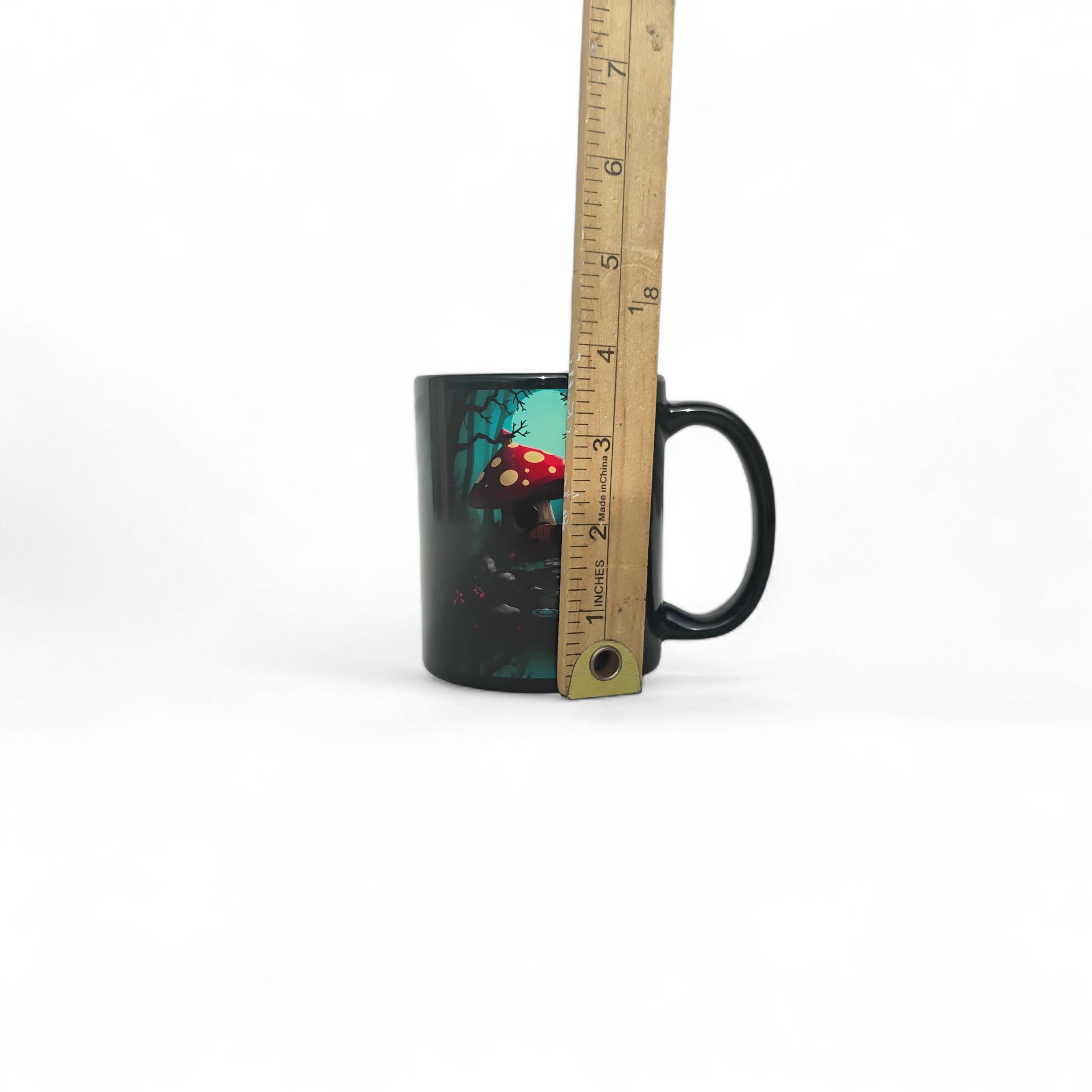 Step into a magical woodland every time you sip. This mushroom cottage forest mug features a charming fairytale scene with a cozy mushroom house nestled deep in an enchanted forest.